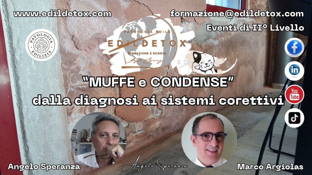 Presentazione Evento Formativo di Approfondimento di II° Livello EDILDETOX. Che si terrà 1 2 3 Dicembre 2023 a Rimini. Gli argomenti che affronteremo sono le MUFFE e le CONDENSE e come interagiscono con l’INTONACO.